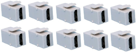 RiteAV Female to Female HDMI Keystone Couplers are the same on the front and back, so you can connect your HDMI Cabling to them in no time. Simply plug your HDMI Cables into both sides of the plate the same way. No tools are required. Theyre universally designed to easily fit standard-sized brand name keystone blank wall plates and fit seamlessly into all RiteAV Blank Wall Plates as well. Our HDMI Keystone Couplers are versatile, since they can also be used in surface mount boxes and patch panels that have a standard-sized opening. RiteAV Keystone Couplers are removable to allow for easy upgrades or plate re-configurations in the future. The sturdy construction of the couplers ensures a long service life and a simple, affordable way to keep your cables hidden. They also provide a neat, convenient way to extend cables that are already in place, without the need for relocating them. This discreet solution enables you to route your cabling through the walls and results in a clean, professional look behind wall mounted televisions, monitors, projectors and entertainment centers in both residential (home theater) and commercial (classroom, boardroom, factory floor, recording studio, etc.) settings. We offer a variety of couplers in an assortment of colors that all match our Blank Wall Plates to suit all of your A/V requirements. The 10 pack is a smart, economical choice when needing to purchase multiple jacks since it saves you money buying in bulk as well as numerous trips to the hardware store.