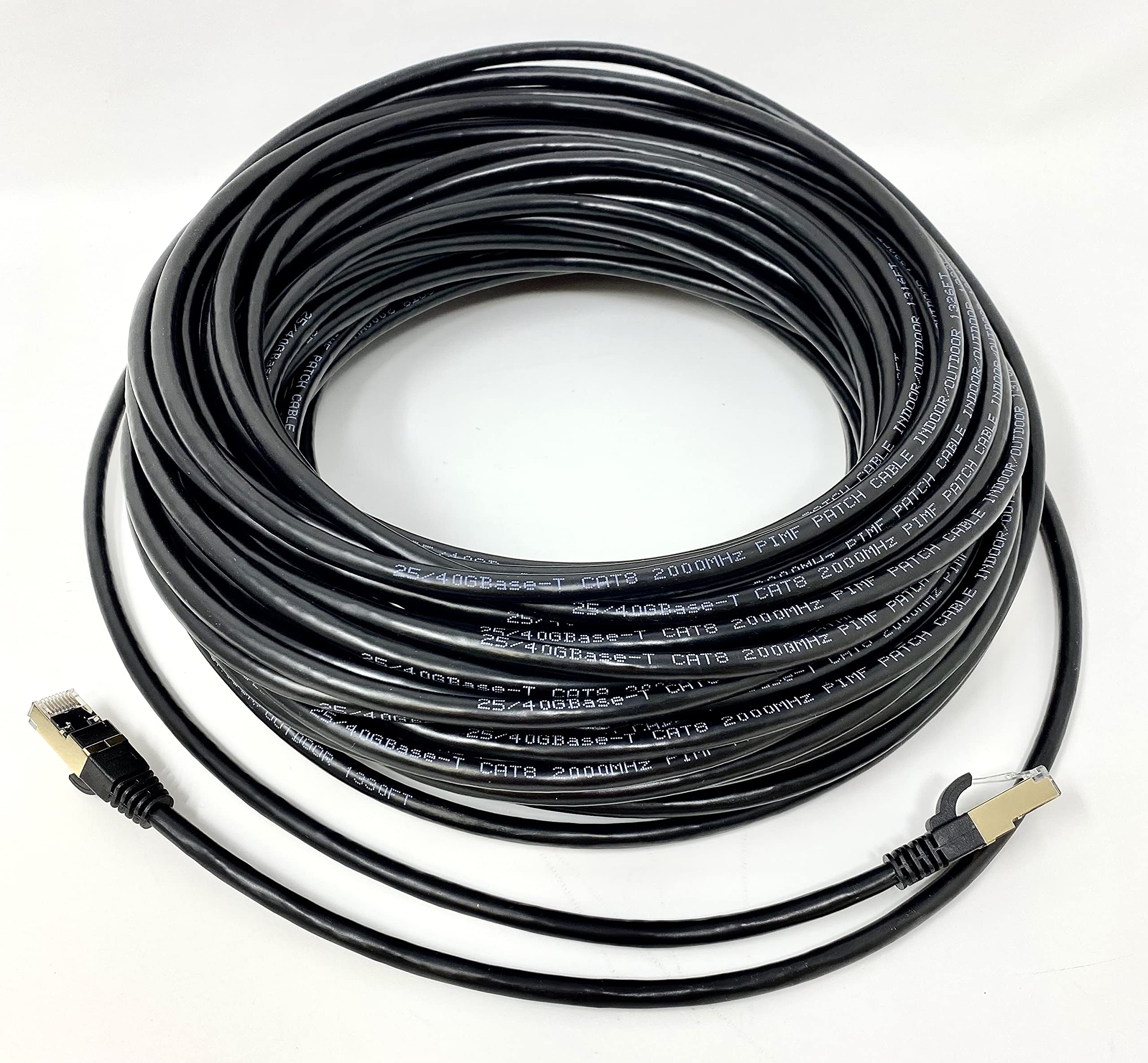 RiteAVs Cat 8 Indoor/Outdoor Rated Cable is a cost-effective solution which meets the growing demands for increased bandwidth coupled with faster speeds. The cables construction makes it possible to withstand environmental conditions while the heavy duty jacket also provides a secure, reliable and permanent connection indoors too. Theyre perfect for plug and play deployment with all High Density Data Center Equipment (i.e. servers, switches, hubs, network adapters, attached storage devices and patch panels), while also being ideal for use in the home with modems, routers, PoE, televisions, security cameras, gaming equipment and smart home/office products. Basically any application that requires high performance networking can benefit with the use of this cable due to its comprehensive compatibility to preceding categories (it can be used in place of Category 5, 6 and 7 Cables) and providing a substructure for likely network upgrades, when the older standards are currently in place. The cable design enables enhanced performance to its predecessors, by using 2000 MHz signals to transmit data up to 40 Gbps. The conductors are made from Oxygen Free Copper which provide superior conductivity and sonic accuracy. Its twists and shielding prevent cross talk and safeguard the cable from EMI/RFI and noise, therefore providing a more stable, reliable and accurate data transfer yielding exceptional results. An integrated strain relief provides a snagless, low profile connection and the durable jacket ensures a long service life. The need for Category 8 Ethernet is expanding rapidly with the ever-growing bandwidth accessible through broadband, a greater need for high-speed data transmission, cloud computing and high-definition audio/video streaming. Our product can either satisfy your current need for high-speed cabling at an affordable price, or future-proof your network for wide-span upgrades as the need for faster transfer speeds emerge.