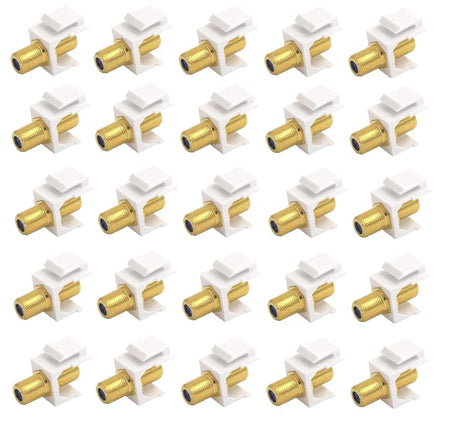 RiteAV Gold-Plated 3GHz RG6 RG59 F-Type Coax Keystone Adapter Coupler Female to Female - White (25 Pack)