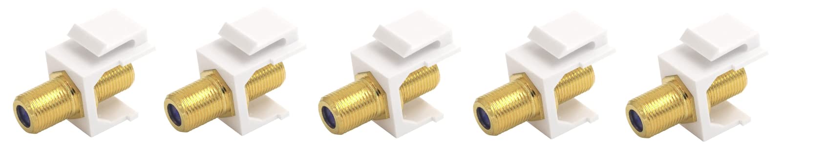 RiteAV Gold-Plated 3GHz RG6 RG59 F-Type Coax Keystone Adapter Coupler Female to Female - White (5 Pack)