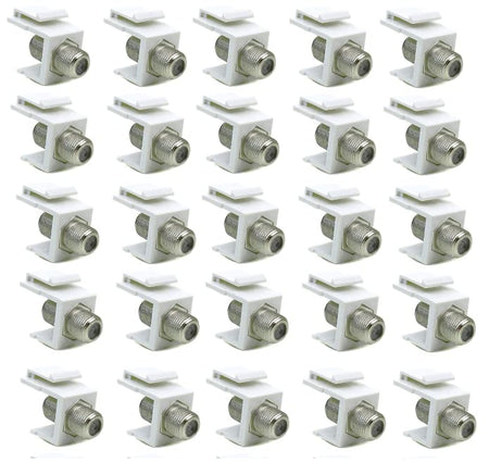 RiteAV White Coax Cable F Type Keystone Jack Coupler Connector Female to Female (25 Pack)