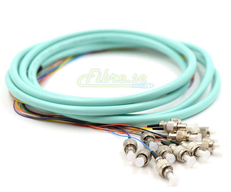 OM3 - 10G Multimode (50/125) - 12 Strand - Fiber Optic Pigtail - FC/UPC - Riser Jacket