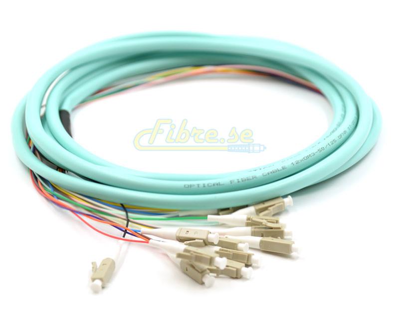 OM3 - 10G Multimode (50/125) - 12 Strand - Fiber Optic Pigtail - LC/UPC - Riser Jacket