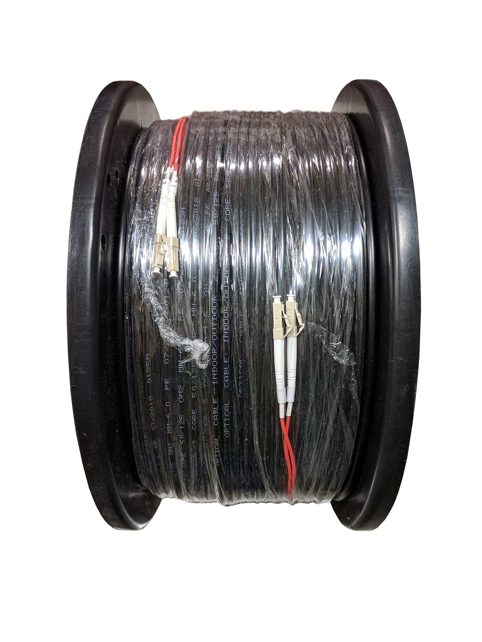 This 250M long, 2 strand cable is UV rated, indoor-outdoor, black jacket, with approximately 12 breakout. Both ends terminated.