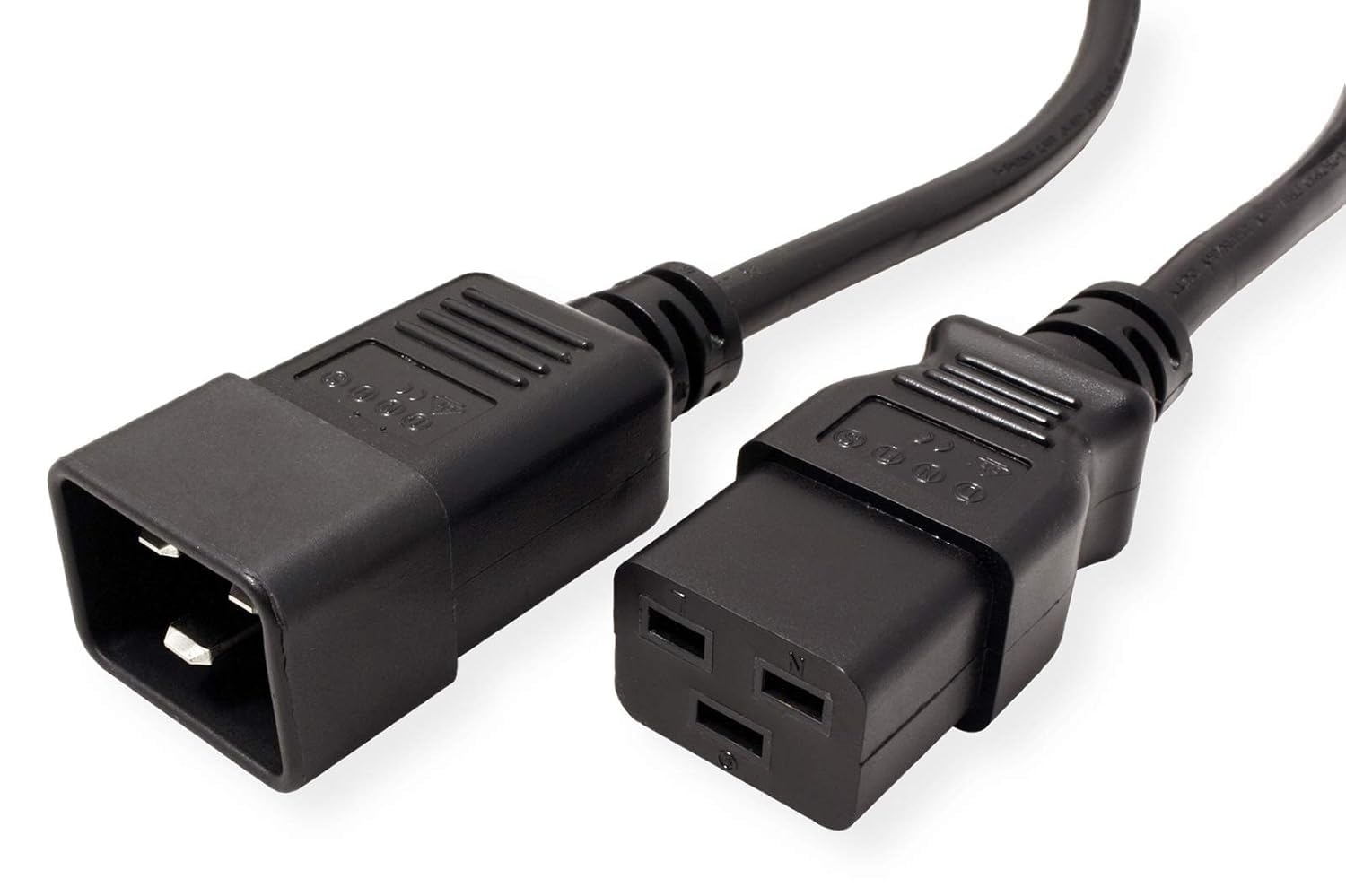 Connect C19 receptacle to computer, server or other devices and plug C20 connector into a PDU or UPS in a data center. Extend the length of an existing power cord for more flexibility. This heavy duty 12 AWG power cord is fully molded for durability. UL and cUL listed. All relevant materials are complied with RoHS and REACH directive.