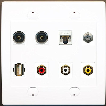 RiteAV 2 TOSLINK 1 CAT5E 1 Coax 1 USB-A-A 1 RCA RED-White-Yellow WALLPLATE White