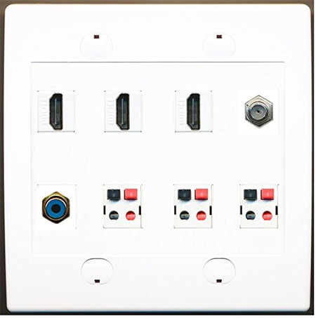 RiteAV 3 Port HDMI 1 x Coax 1 x RCA Blue Subwoofer and 3 Speaker Jack Wallplate