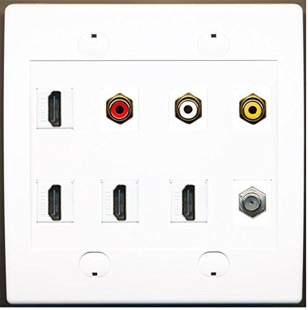 RiteAV 4 x HDMI 3 x RCA Composite and Coax Cable TV Wallplate