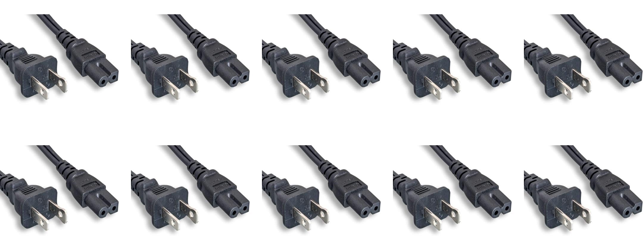 RiteAV - (10 Pack) Black | 10ft Polarized NEMA 1-15P to Polarized IEC 60320 C7, 18AWG, 10A, 125V, for Small Appliances, Laptop Power Adapters