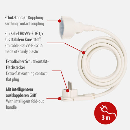 RiteAV - (2-PACK) Förlängningssladd, Vit, 3 m