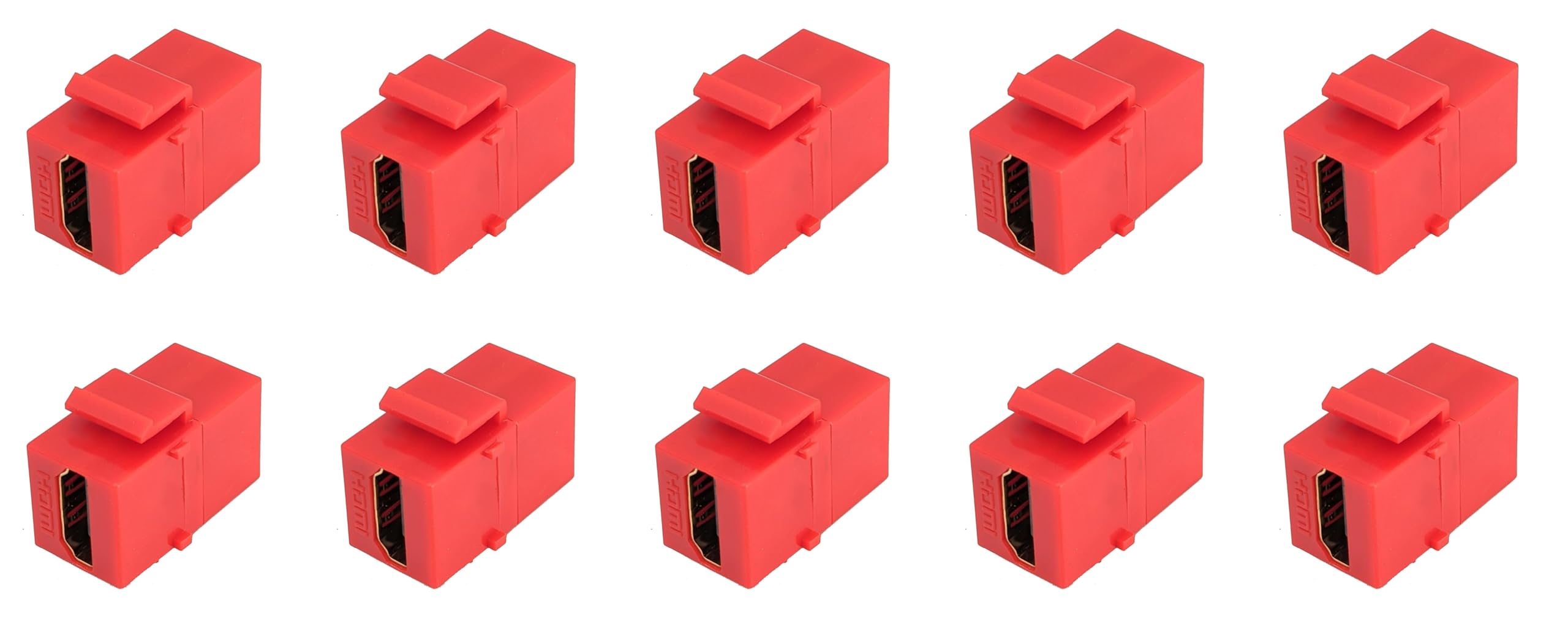 RiteAV HDMI Red Keystone Adapter Coupler Female to Female [10 Pack]