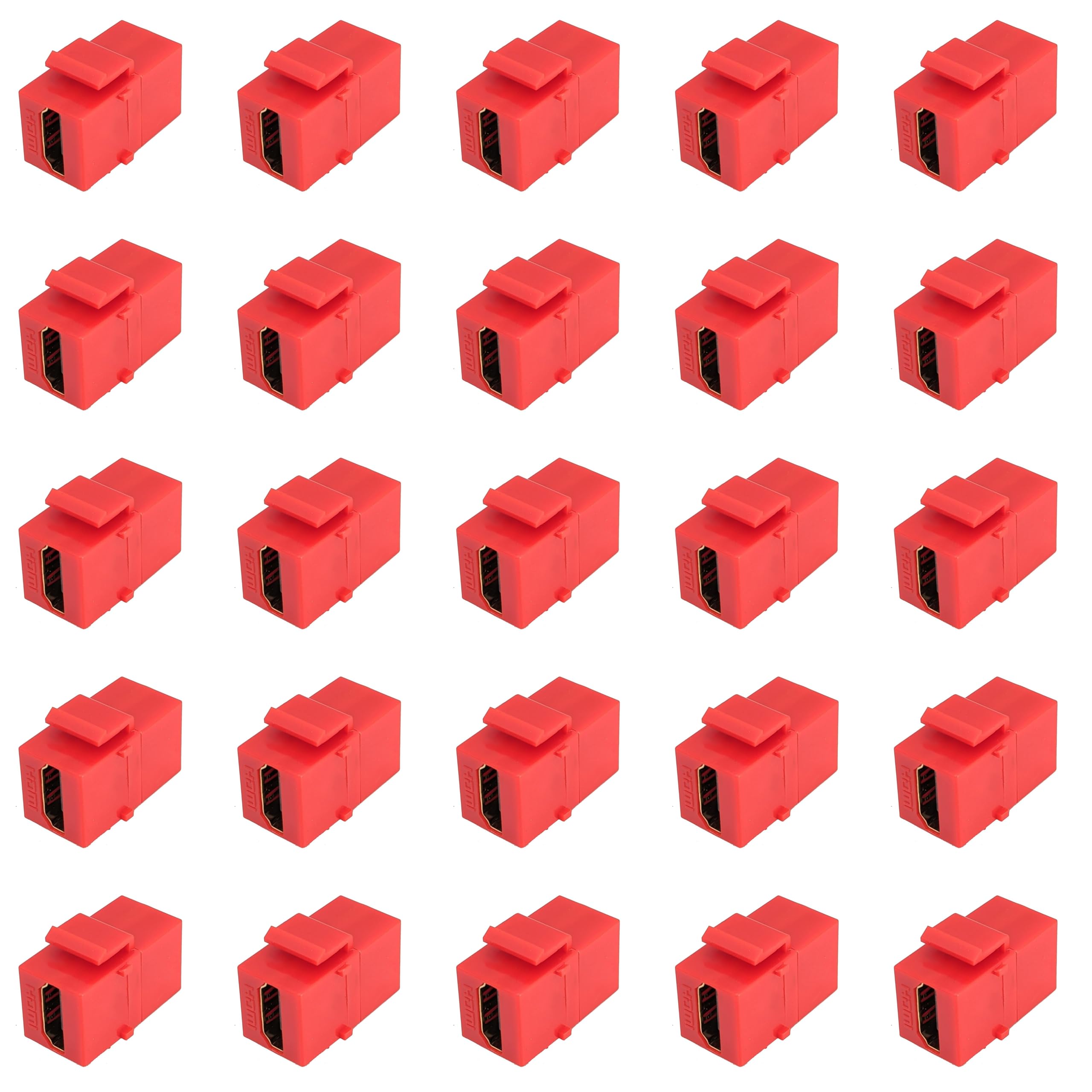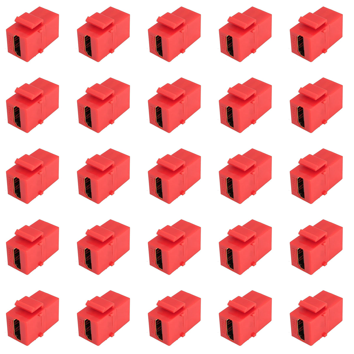 RiteAV HDMI Red Keystone Adapter Coupler Female to Female [25 Pack]