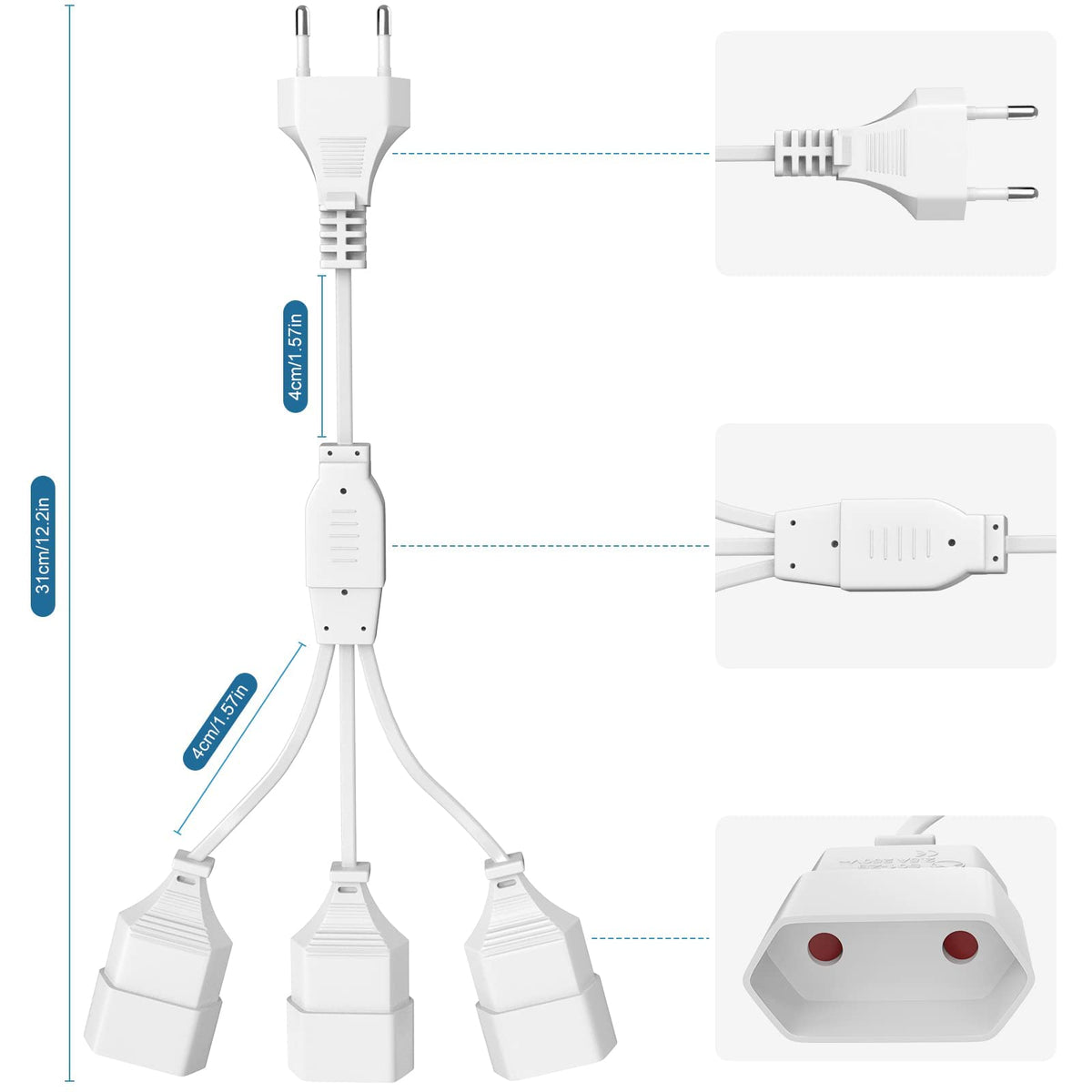 - Euro-kontakt förlängningskabel: Euro-kontakten är lämplig för jordning av säkerhetsuttag enligt tysk standard. Anslut den helt enkelt till en tysk europlug och få en förlängning upp till 3 europlug, uppfyller dina laddningsbehov säkert och kontinuerligt.