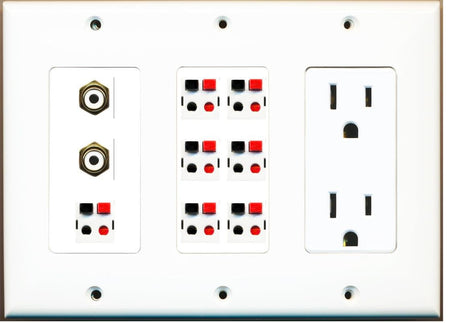 RiteAV - (3 Gang 15A Power Outlet 2 RCA White 7 Speaker Jack White