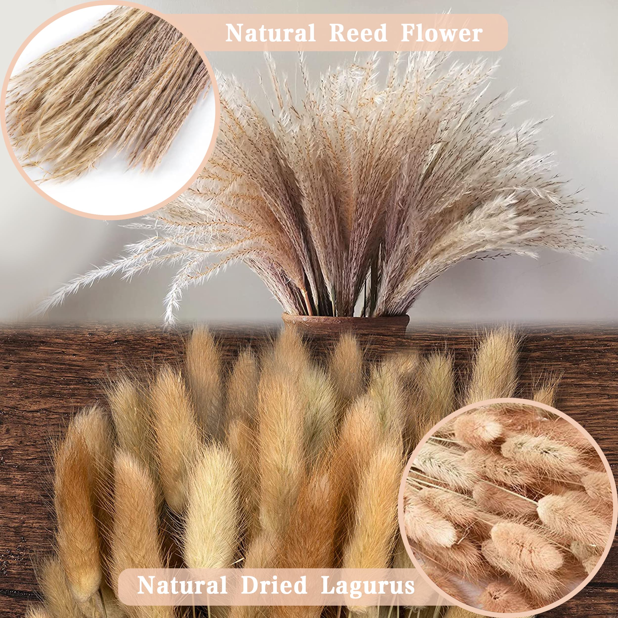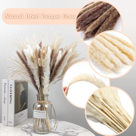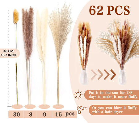 - 🌾 Naturligt pampasgräs : Du får naturligt pampasgräs och vitt pampasgräs, rörflen och rabbittail gräs, med 50 cm vit vintage spetsband och vintage kraftpappers gratulationskort, fluffiga Lively pampas gräs förskönar din lägenhet för en unik inredningsupplevelse.
