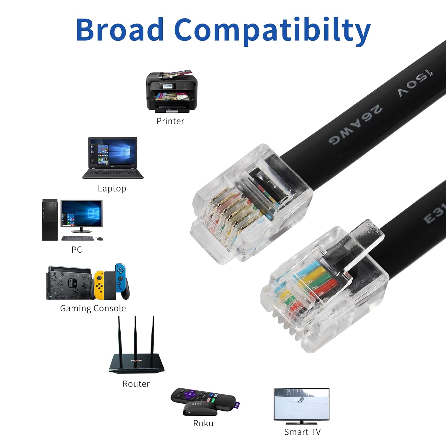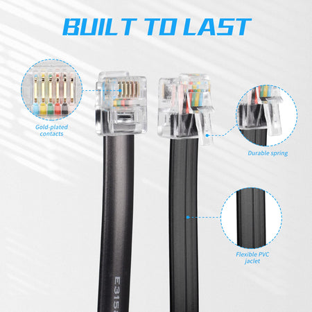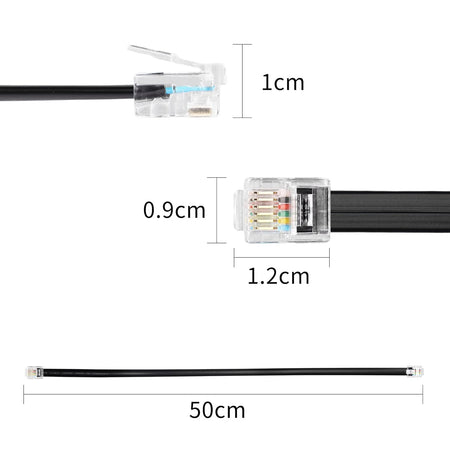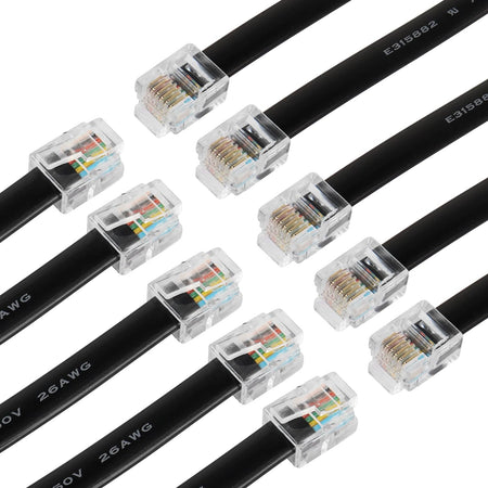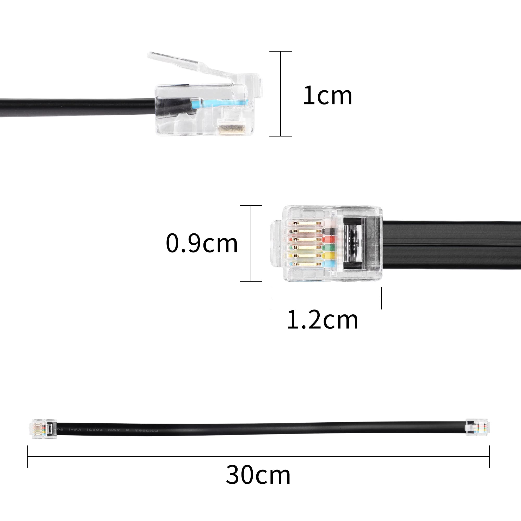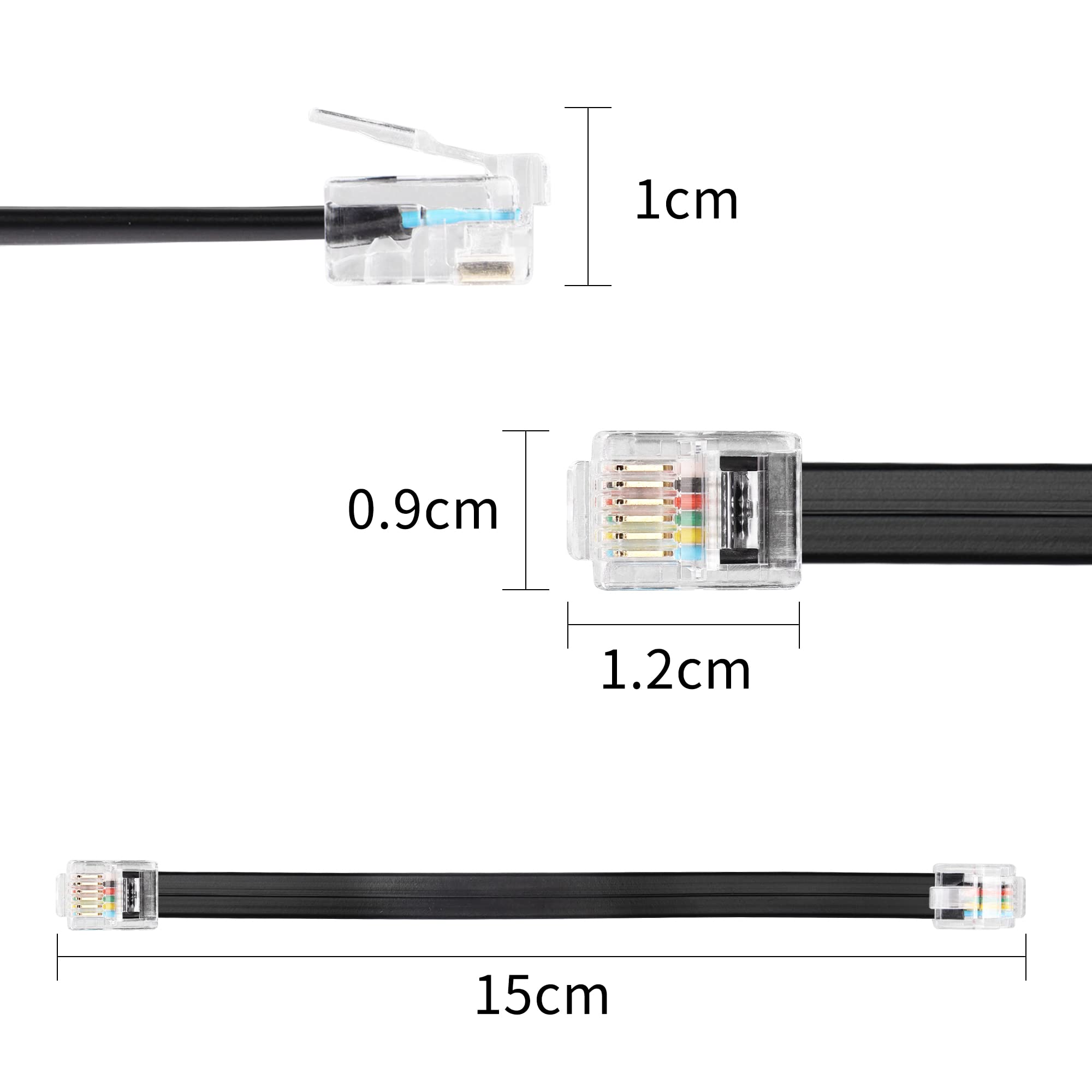 Kort rj12 6P6C-telefonkabel för både data och röst, med en 6P6C-modulär kontakt i varje ände, som bara är 6" lång (inklusive kontakter).
