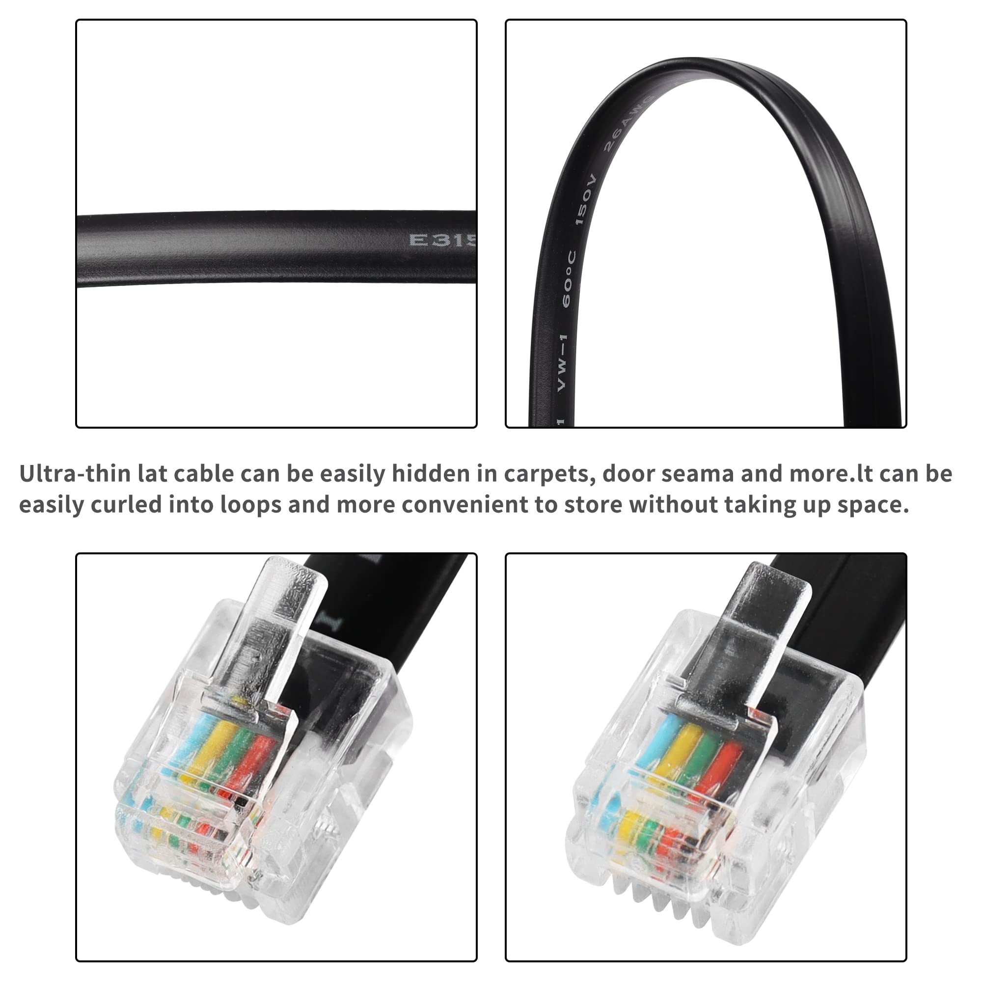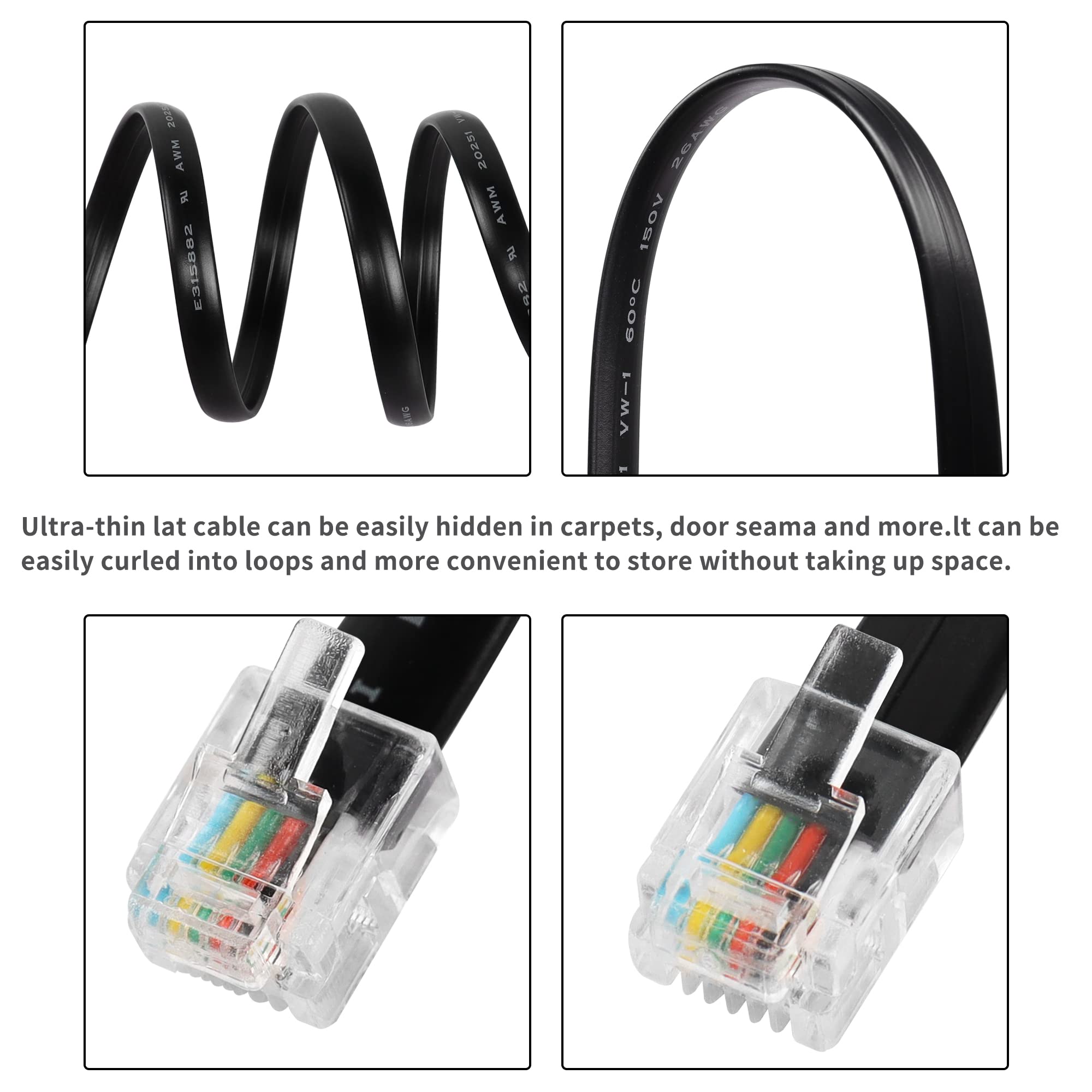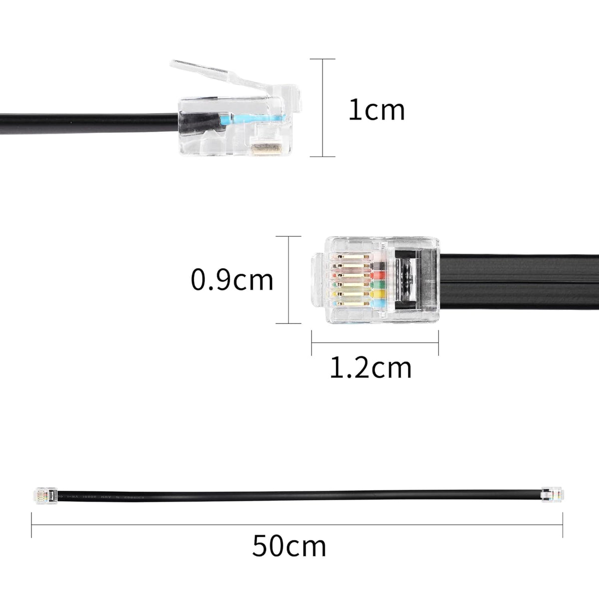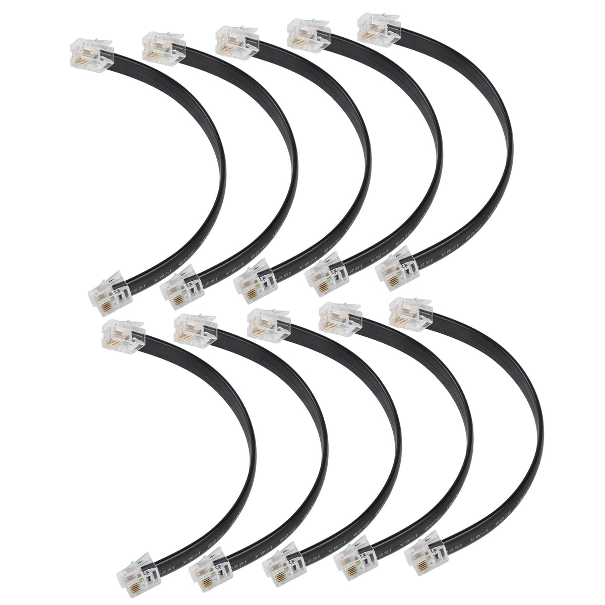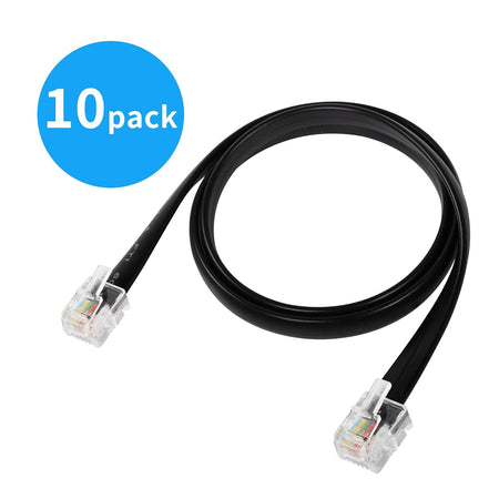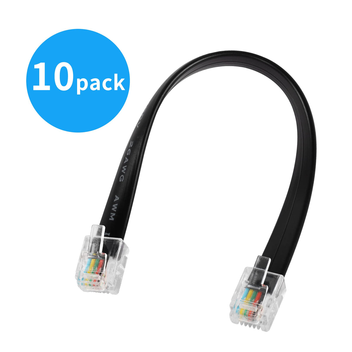 RiteAV - 6 tums kort RJ12 rak kabel 6P6C hane till hane platt (svart, 10 paket)