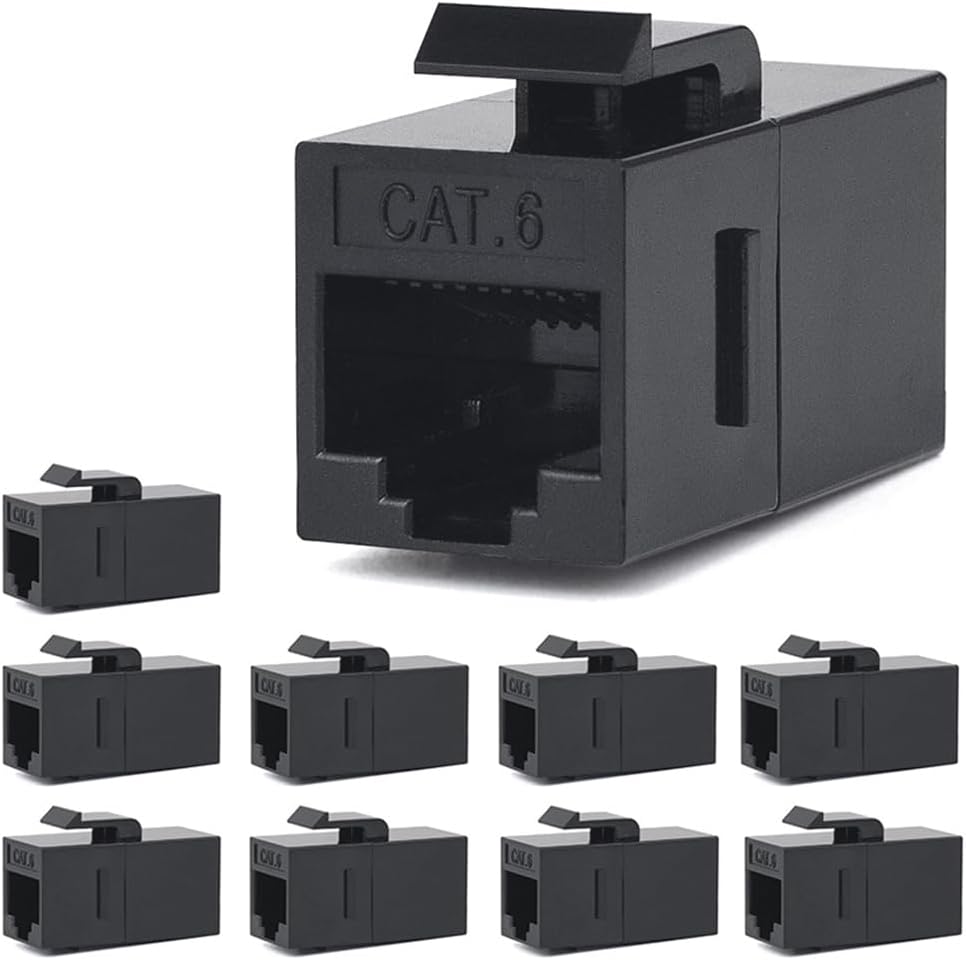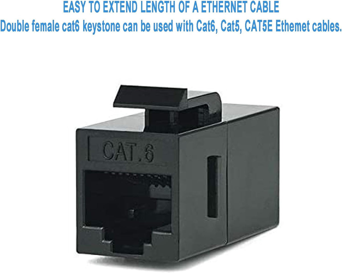 RiteAV - RJ45 koppling, CAT6 Keystone Jack F till F rak oskärmad in-line Cat 6 Ethernet-modul (10 st, svart)