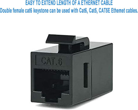 - ★ Dubbel kvinnlig RJ45-kontakt: Denna inline-ethernet-koppling ansluter två separata kategori 5e/6-kablar (beroende på typ du köpt) via en RJ45 keystone-koppling. Dubbel hona cat6-tangentsten kan användas med Cat.6, Cat5, CAT5e Ethernet-kablar.