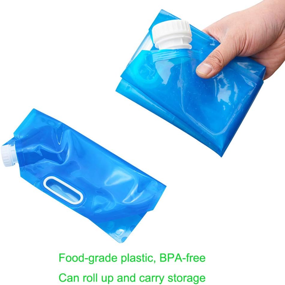 RiteAV - 4 Pack Water Container 5L Outdoor Folding Water Bag Car Water Carrier Container Sport Camping Hiking Picnic Safety Plastic Water Storage Containers Blue