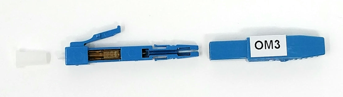 Ultra Spec Cables Field Installable LC-UPC OM3 Connectors simplify the fiber termination process by offering a quick and simple solution to onsite installations, hybrid solutions, routine maintenance or emergency repairs. The user-friendly connectors are pre-stubbed with a machine polished ferrule, so there's no need for hand polishing in the field. The fiber is aligned using precision splice technology and index-matching gel to yield low insertion loss, high return loss and exceptional performance. The hassle-free connectors eliminate the need for epoxy, splicing, polishing and heating, without sacrificing reliable and consistent transmission parameters where standard polish/splice technologies are employed. A quick assembly guide is included that provides step by step visual/written instructions to complete the terminations in very little time. No power is required and only standard fiber preparation tools are needed. This convenient, cost-effective, time-saving solution is perfect for Metro/Access/Local Area/CATV and Data Processing Networks. FTTX/FTTH applications and standards are achieved for both optical and mechanical performance after proper termination and a VFL can be used to confirm optical continuity. We also offer SC and FC Connectors that can accommodate 0.9mm, 2mm and 3mm cordage, Bulk Fiber Optic Cable and Fiber Cleaning Products.