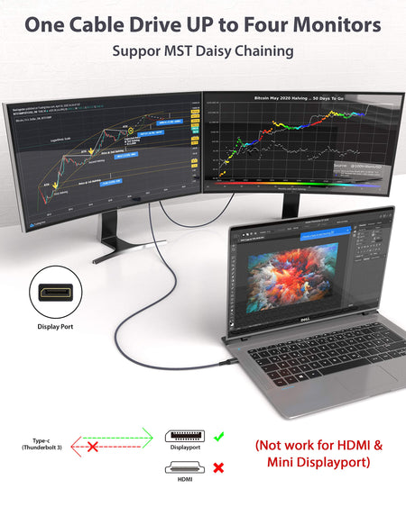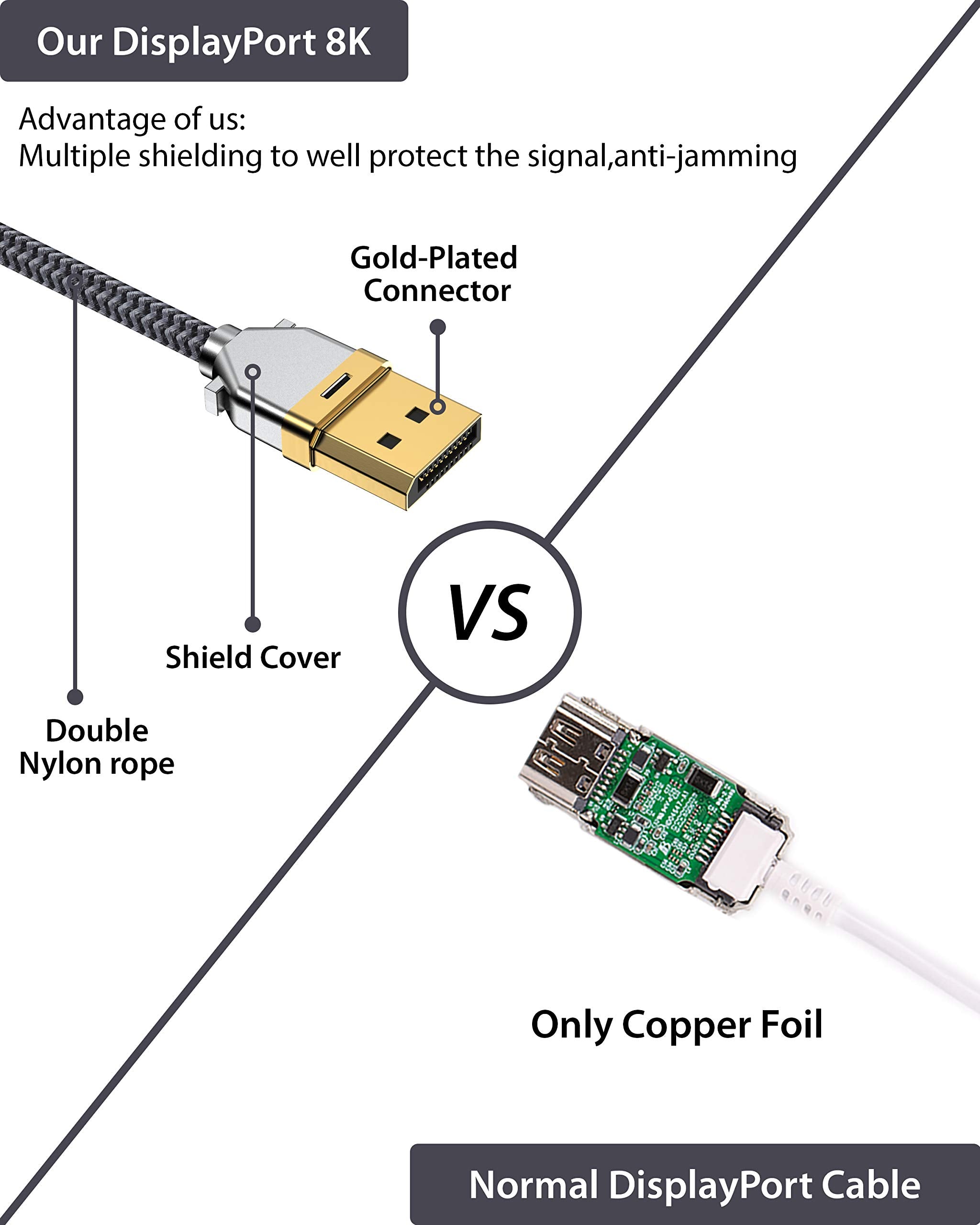 - 【Livslång kundservice】DisplayPort USB C-kabel av dubbel flätad nylon med en kabellängd på 3 m/10 fot möjliggör enkel anslutning över långa avstånd. Guldpläterad för kontakt Livslång garanti från oss. Om du behöver ytterligare hjälp, kontakta vårt team.