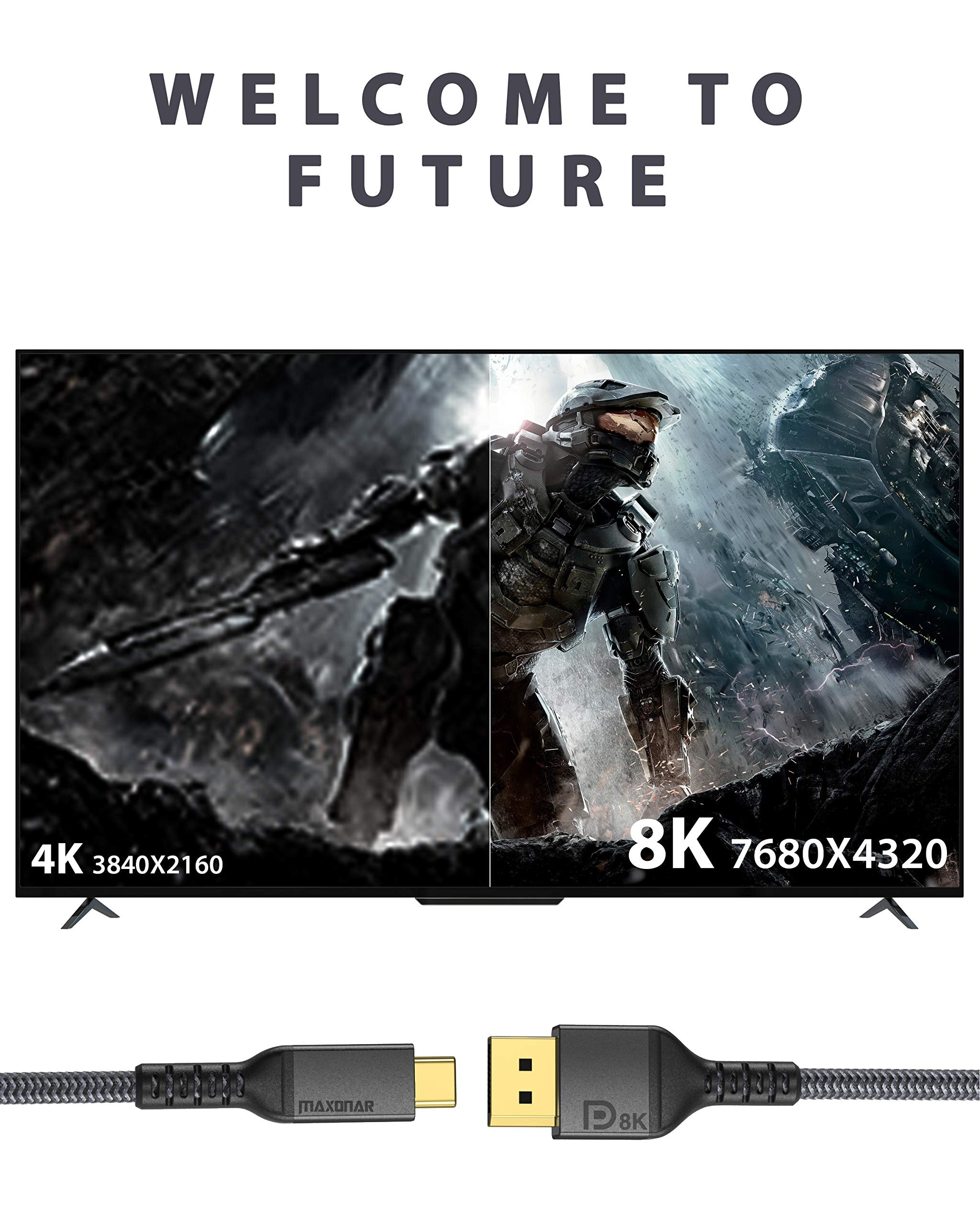 - 【Stöder UHD-upplösningar på 8K@60Hz】USB C till Displayport 1.4-kabel stöder upplösningar på 8K (7680x4320) @60Hz, 5K (5120x2880)@60Hz, 5120x1440@120Hz,4K (3840 x 216666 0)@600 Hz/120Hz/144 Hz,2K@120Hz/165Hz/240Hz. Maxonar USB C till DP1.4 adapter bakåtkompatibel med DisplayPort 1.3, 1.2 och 1.1. (Obs: Denna kabel är kompatibel med Samsung Odyssey G9 CHG90 CRG9. Vänligen uppdatera din MacOS/Windows till den senaste versionen)