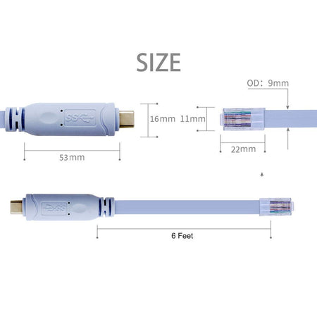 Cisco - konsolkabel till USB C till Rj45 Cisco-konsolkabel för MacBook-bärbara datorer (FTDI RS232 chip, 6 Ft/1,8 M)