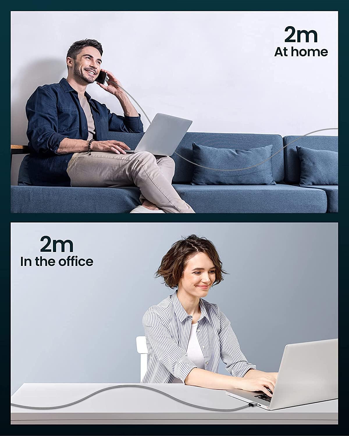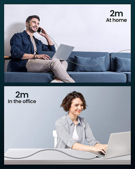 - ♥【Perfekt 2M 2-pack】- Med 2M-längden kan du ligga på soffan eller soffan och använda dina enheter medan du laddar samtidigt. Och du kan använda fritt i ditt sovrum, kontor och till och med i baksätet på din bil