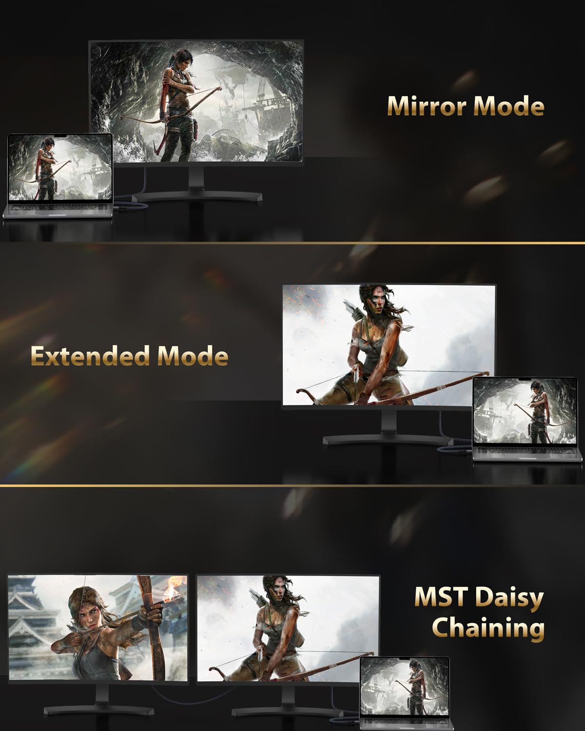 - 【Stark kompatibilitet】Fungerar för källenheter med USB C eller Thunderbolt 3-portgränssnitt som stöder alternativt DisplayPort-läge (DP Alt-läge), t.ex. MacBook Pro 14 tum/16 tum/2016–2019, M1 Pro, M1 Max,MacBook, MacBook Air 2018/2020,2017/2018 iMac/MacMini 2018/2020, iPad Pro 2020/2018, i Pad air 5/2021, Dell XPS15/13, ALIENWARE m17, surface Pro7/Surface Book 2/Surface Go, Lumia950, Lenovo Yoga C940, Chromebook Pixel/Chromebook/Pixelbook, Galaxy S22/22+/22 Ultra, Galaxy Tab S8/S8+/S8 Ultra.