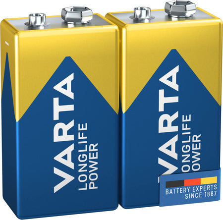 Longlife Power 9V Block 6LR61 alkaliskt E-Block batteri (2-pack) – tillverkat i Tyskland – perfekt för brandlarm, rökdetektorer, tuners