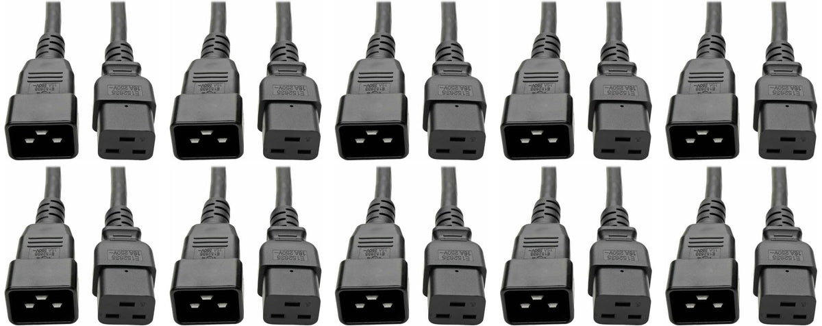 Connect C19 receptacle to computer, server or other devices and plug C20 connector into a PDU or UPS in a data center. Extend the length of an existing power cord for more flexibility. This heavy duty 12 AWG power cord is fully molded for durability. UL and cUL listed. All relevant materials are complied with RoHS and REACH directive. 10 Pack.
